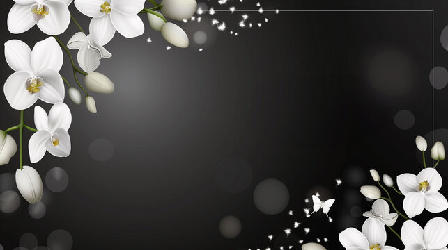 Memorial banner for a funeral service home featuring a border of white orchids. Text space available.