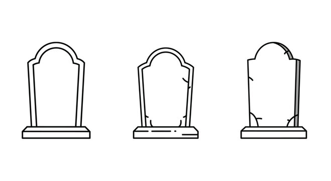 Tombstone line icon set. Headstone outline vector sign.