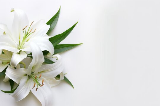 Calm black ribbon flower arrangement with white lilies on rock by the sea for funeral tribute