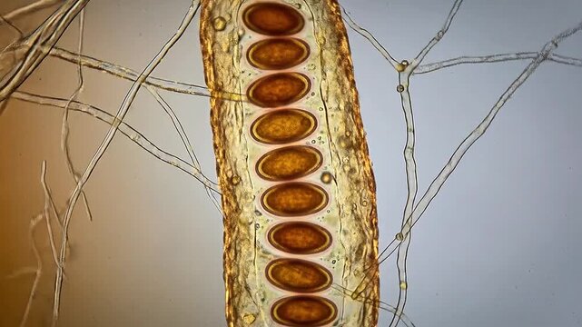 High-magnification image of fungal spore sac