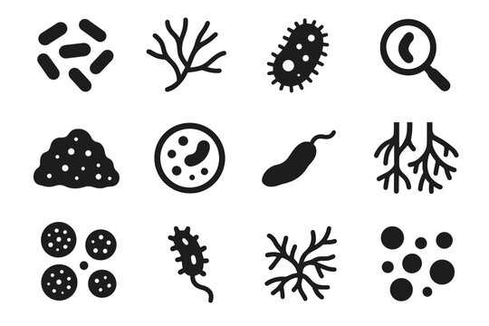 Ciliate fungi under flagellated fungal organic culture icons spores microbes soil icon