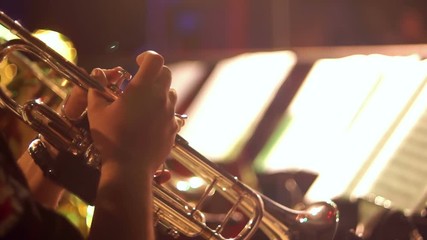photo of an electric bass guitar on stage, concert lighting, green and orange hues,