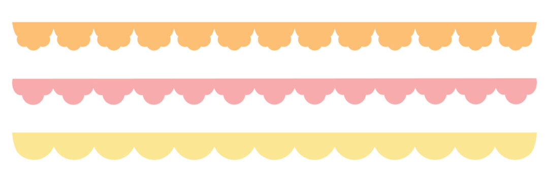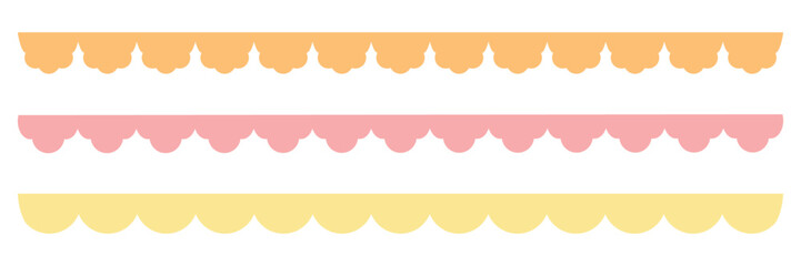 Cute scalloped edge seamless upper border set. Vector illustration isolated on white background.