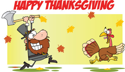 Happy Thanksgiving With Pilgrim Chasing With Axe A Turkey
