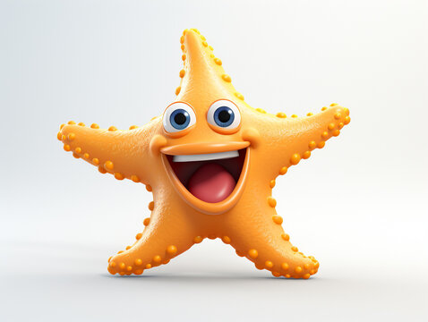 A 3D Cartoon Starfish Laughing and Happy on a Solid Background