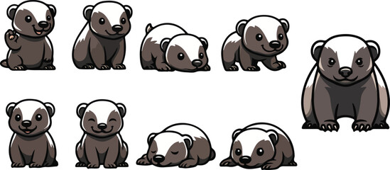 vector illustration of honey badger funny cute cartoon mascot character cartoon with 9 poses 01