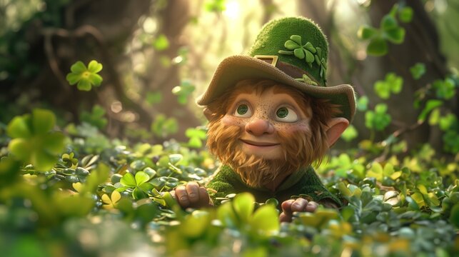 Funny 3d cartoon leprechaun character with red beard and green suit winking representing saint patricks day fun and irish folklore magic and lucky mascot