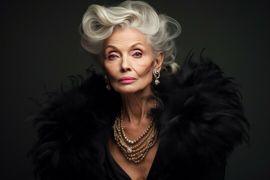 Portrait of a sophisticated elderly lady with stylish hair and a fur shawl