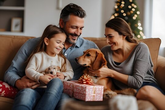 parents and their furbabies exchanging presents, showcasing the bond and affection between them