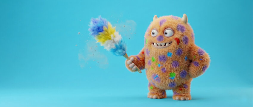 Playful stylized 3D furry monster cartoon character with exaggerated features for animation