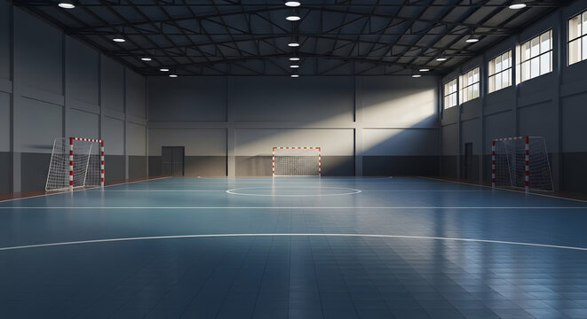 dramatic indoor futsal court with a little afternoon light coming into the court