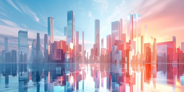 Urban cityscape at dusk with tranquil aesthetic for modern living