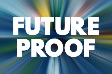 Future Proof - process of anticipating the future and developing methods of minimizing the effects of shocks and stresses of future events, text concept background