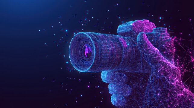 Futuristic Glowing Red and Blue Cybernetic Interface with Central Focus.