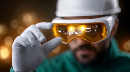 Futuristic worker using augmented reality goggles for advanced technology solutions and innovation in industry