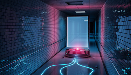 Billboards on a futuristic city scene at night. Concept art with a futuristic vision of advertising