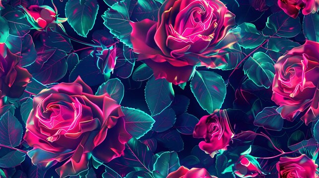A dynamic and glowing pattern with neon roses bursting with energy, perfect for a dynamic and futuristic aesthetic.