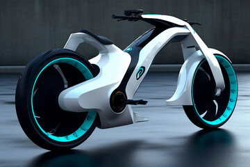 generative ai illustration of a futuristic bike in turquoise neon color against black background