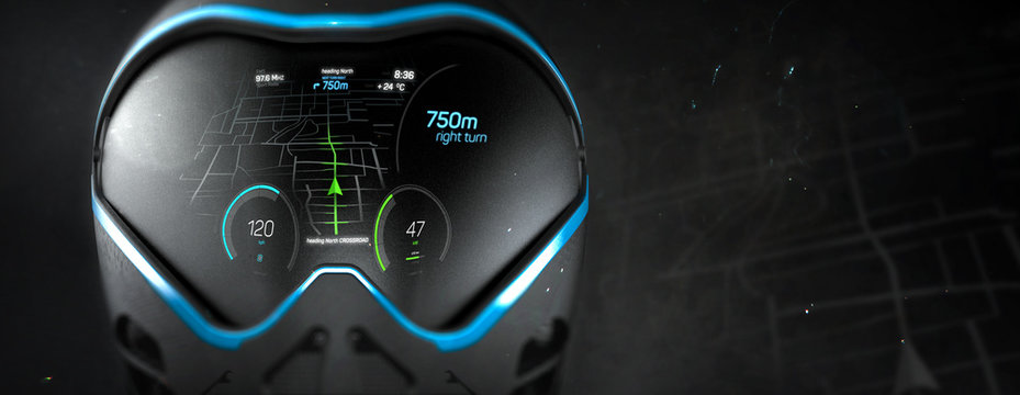 Futuristic navigation helmet concept (with grunge overlay) - 3d illustration