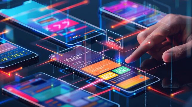 A futuristic robot hand delicately holding a glowing holographic display in the air