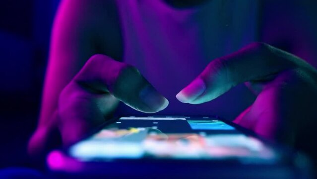 Conceptual illustration of digital content marketing with floating media icons and neon light interfaces, symbolizing online engagement, multimedia content, and data-driven marketing