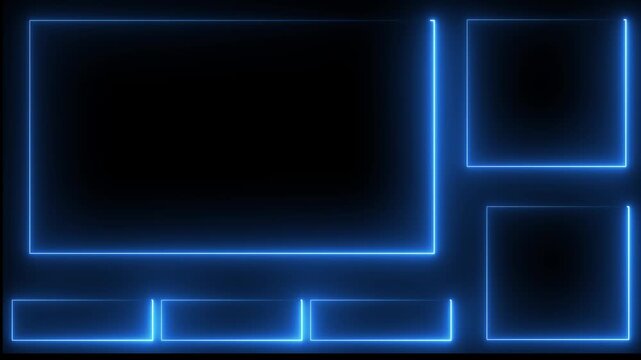 Intermission Stream Overlay Animated, Neon Sign looping facecam and chat for live streaming ,Frame border HUD element. HUD viewfinder. Intermission Stream Overlay Animation. blue color neon box..