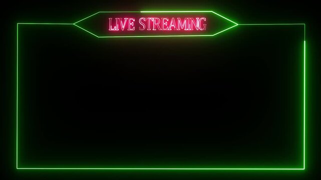 live streaming neon text frame animation. Glowing streaming game live Stream overlay motion graphics. media player or streaming service video.
