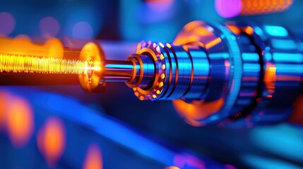 Close-Up of Futuristic Mechanism with Vibrant Light Effects and Industrial Design in Action