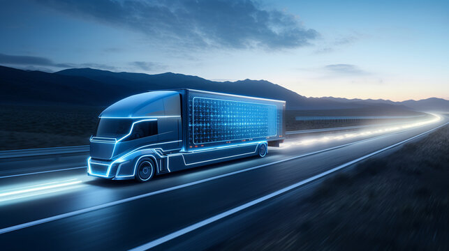 logistics cargo truck transport low poly. business worldwide shipping wireframe concept. consist of lines, dots and triangle. isolated on blue dark background. vector illustration fantastic digital.