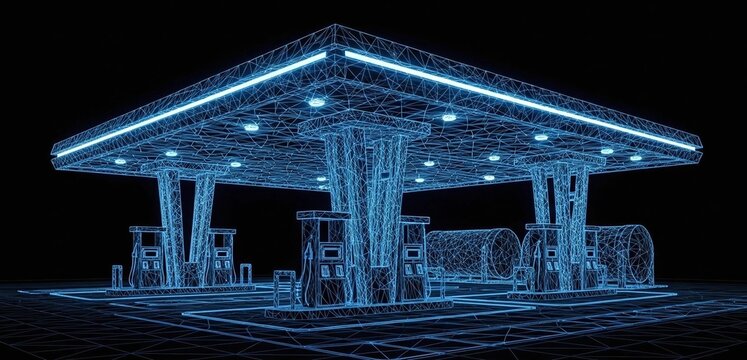 Digital gas station futuristic glow blue lines technology concept