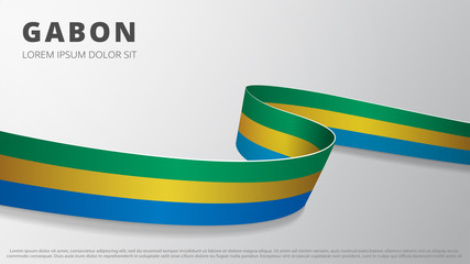 Flag of Gabon. Realistic wavy ribbon with Gabonese flag colors. Graphic and web design template. National symbol. Independence day poster. Abstract background. Vector illustration.