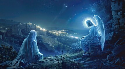Moments of The Annunciation between the Blessed Virgin Mary and the Archangel Angel Gabriel