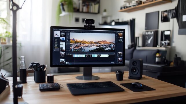 A banner showcasing a stylish smart accessories  with copyspace on the right, with a sleek and modern furniture display background