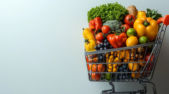 Close up the mini shopping cart and laptop at desk concept using the internet application for online shopping buying and spending on computer technology.