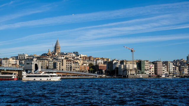 Galata Tower The view of Istanbul. A magnificent visual of the sea, buildings and bridges in the background