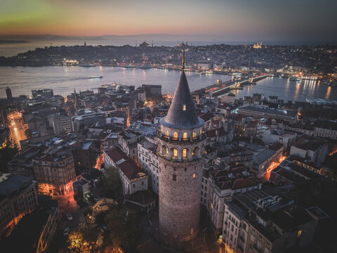 Aerial Galata Tower at Sunset.