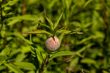 The round growth is a “Petiole Gall” produced by the cottonwood tree protecting itself from insects like aphids by surrounding them in plant cells