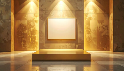 A contemporary art gallery with a solitary empty frame, against a backdrop of minimalist design.
