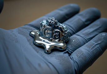 Element Gallium (Ga) A stunning photograph of solid gallium metal melting in a person's gloved hand