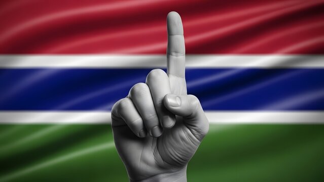 Hand proudly presents The Gambia flag, symbolizing national pride and cultural heritage of the vibrant West African nation