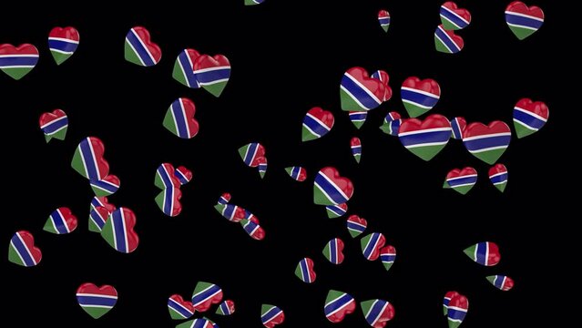 Gambia flag on 3d heart. Animation with flag hearts isolated on a transparent background