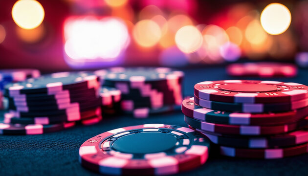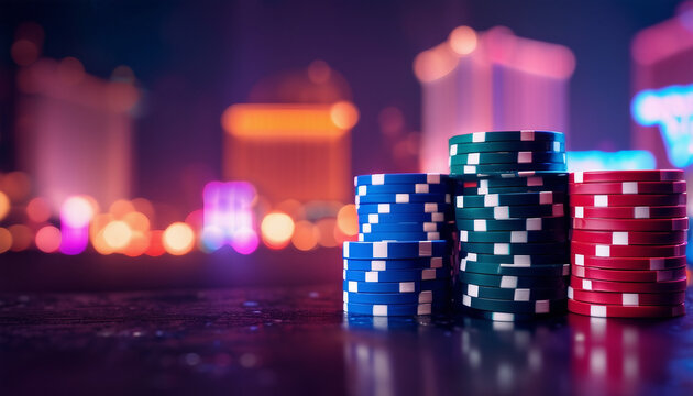 poker chips at Vegas, copy space for text, ad shot