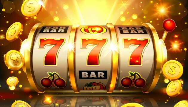 Big win 777 lottery casino concept with slot machine. Win jackpot in game slot machine
