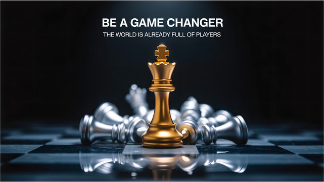 Golden pawn chess stepped out of line to leading black chess and show different thinking ideas. Business technology change and disruption for new normal concept.3d render