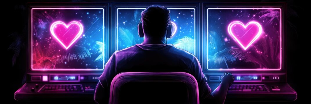 Neon gamer's paradise: exploring love and adventure in a virtual world. Happy Valentine's Day. 14 february.