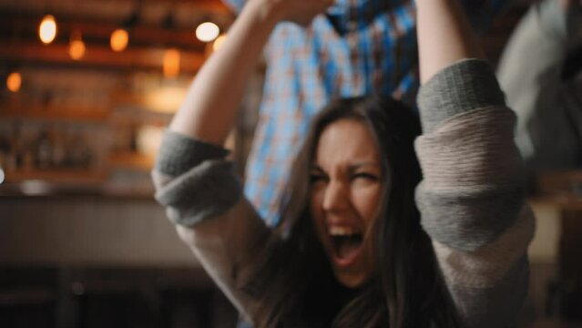 soccer fans watching the match and cheering for their team. Women sitting in the crowd at sports event.