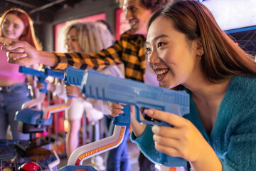 Neon arcade machine glowing with retro gaming vibes
