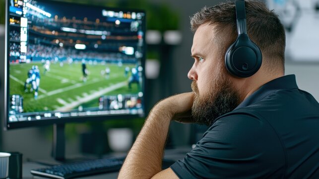 Football coach game footage for team strategy improvement in american football indoor close-up view coaching concept
