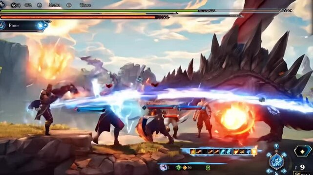 rpg mmo characters fighting a monster video game gameplay Generative AI