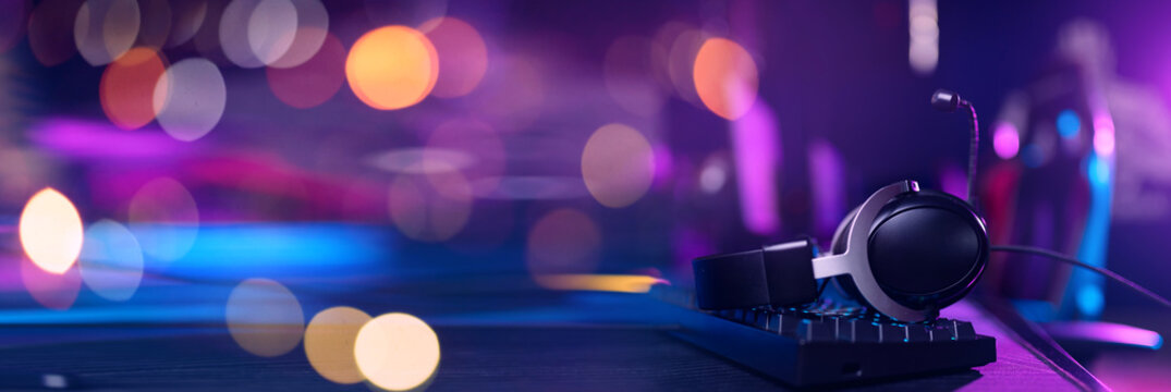 High performance graphics card for gaming and crypto mining  ideal setup banner with copy space